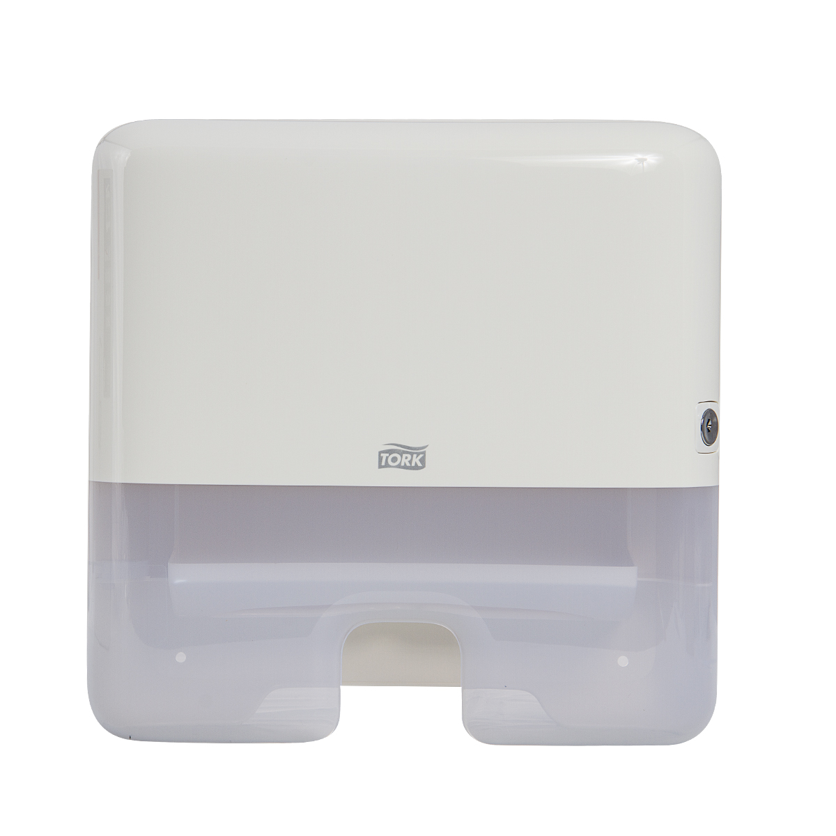 Despachador de toalla interdoblada para manos de la marca TORK con capacidad para 200 toallas. Este despachador de la línea “ELEVATION» tiene un lujoso acabado y resistente fabricación.