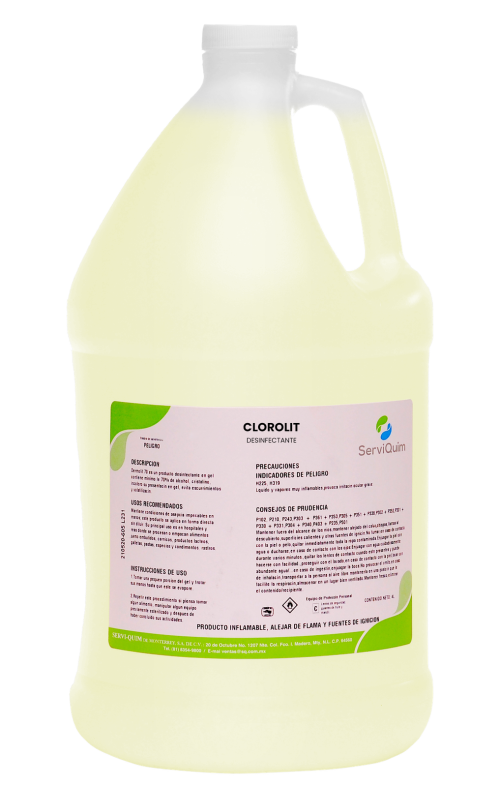 Desinfectante para uso grado alimenticio. Para desinfección de frutas y verduras. Es una solución algicida y bactericida a base de cloro estabilizado.
